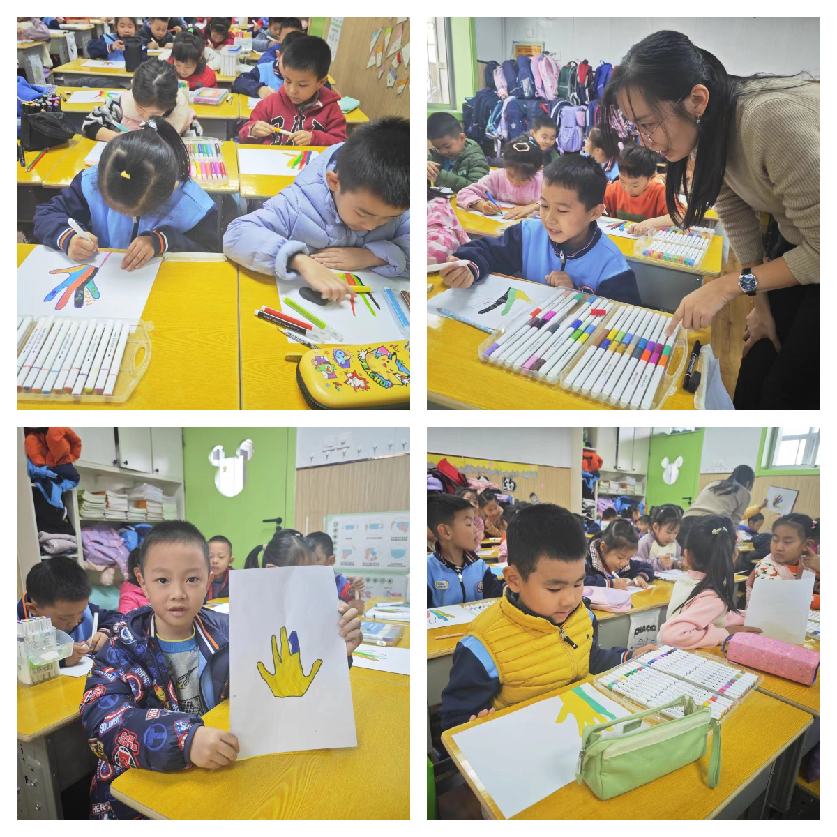 同学们根据自己近五天的心情,制作了《手指画》,看我们画得多认真!